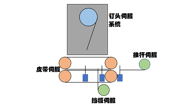 全自動(dòng)粘釘一體機釘箱部分方案,采用5軸聯(lián)動(dòng)的運動(dòng)控制方案,極大的提高了生產(chǎn)效率。