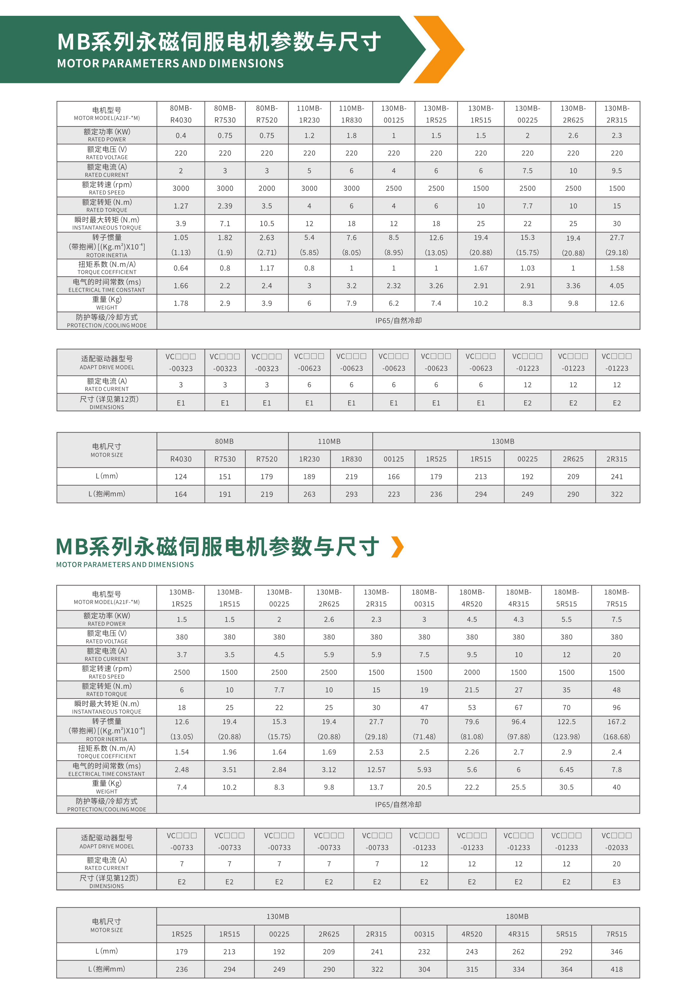MB系列交流永磁同步同服電機,具有以下優(yōu)異的特性,為客戶(hù)的工業(yè)機器人和高端智能裝備提供可靠的保障、業(yè)界一流的磁路設計與仿真。實(shí)現高轉矩密度、非常低的齒槽轉矩和高過(guò)載能力。緊湊的結構適用于各類(lèi)對安裝尺寸要求較高的場(chǎng)合??啥ㄖ苹睦@組設計。額定轉速最高可達8000rpm,MB系列同服電機提供多種標準繞組設計,并可根據用戶(hù)的需求定制化繞組速度,滿(mǎn)足各類(lèi)苛刻的應用需求。