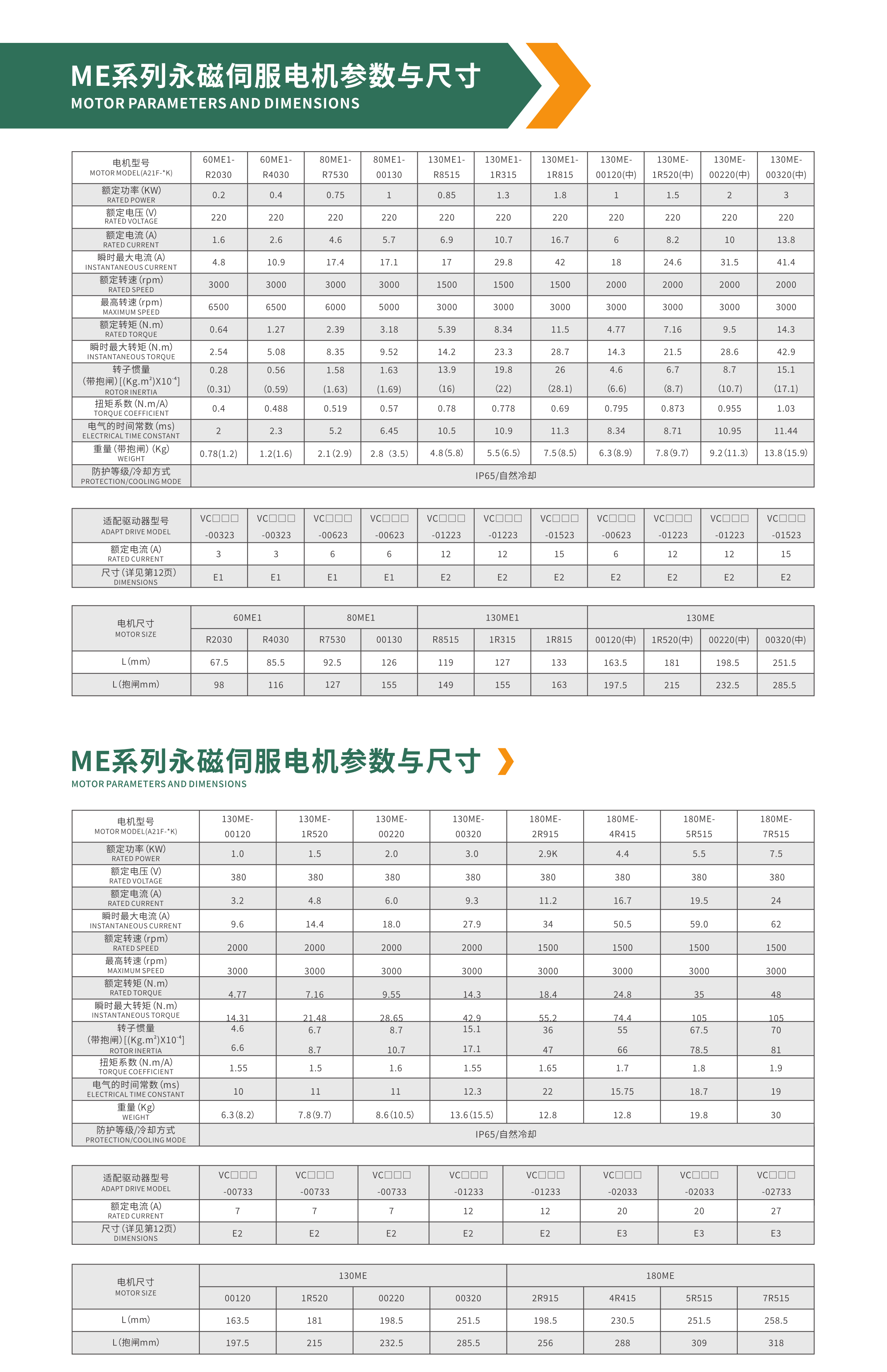 ME系列交流永磁同步同服電機,具有以下優(yōu)異的特性,為客戶(hù)的工業(yè)機器人和高端智能裝備提供可靠的保障、業(yè)界一流的磁路設計與仿真。實(shí)現高轉矩密度、非常低的齒槽轉矩和高過(guò)載能力。緊湊的結構適用于各類(lèi)對安裝尺寸要求較高的場(chǎng)合??啥ㄖ苹睦@組設計。額定轉速最高可達8000rpm,ME系列同服電機提供多種標準繞組設計,并可根據用戶(hù)的需求定制化繞組速度,滿(mǎn)足各類(lèi)苛刻的應用需求。