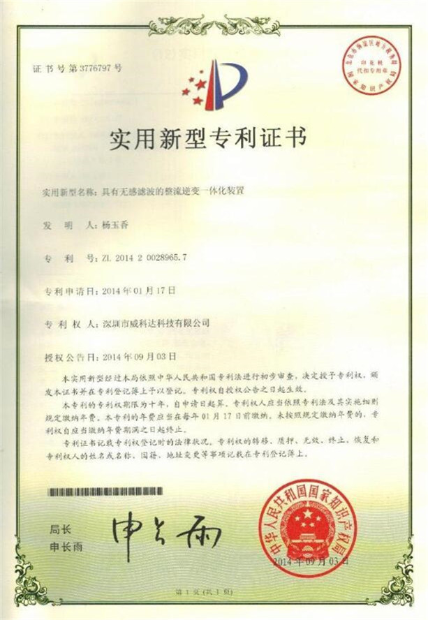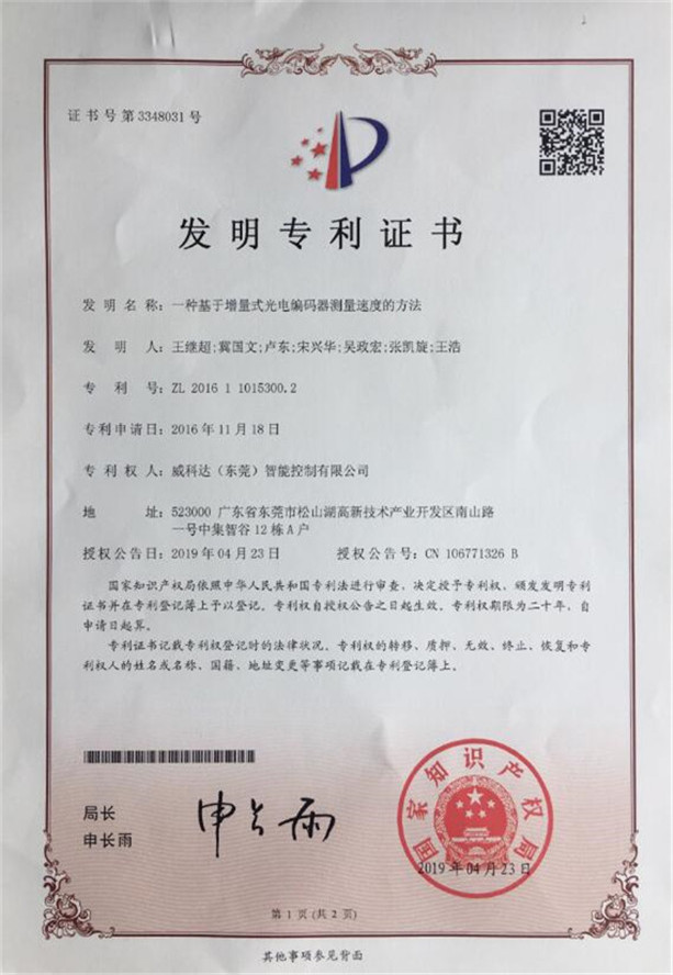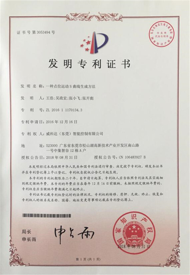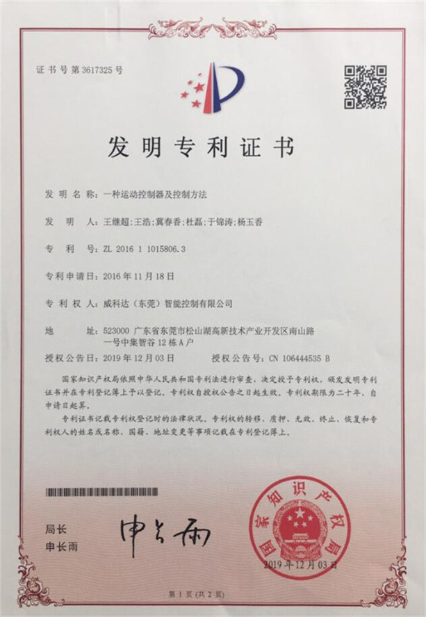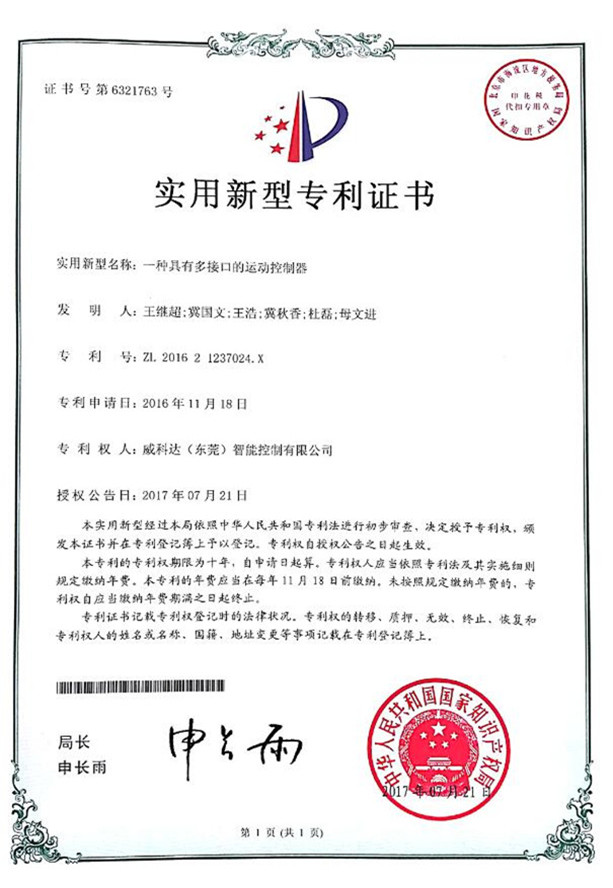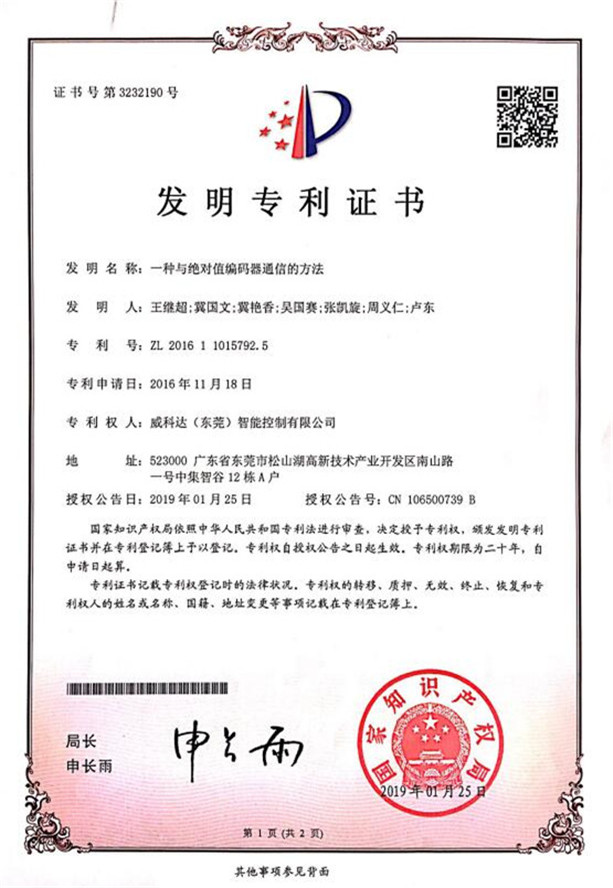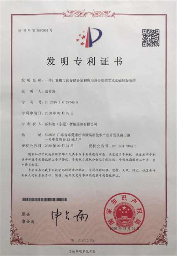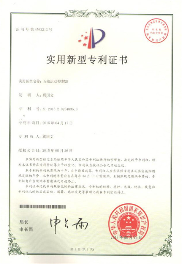 鏈刀伺服驅動(dòng)裝置專(zhuān)利證書(shū)